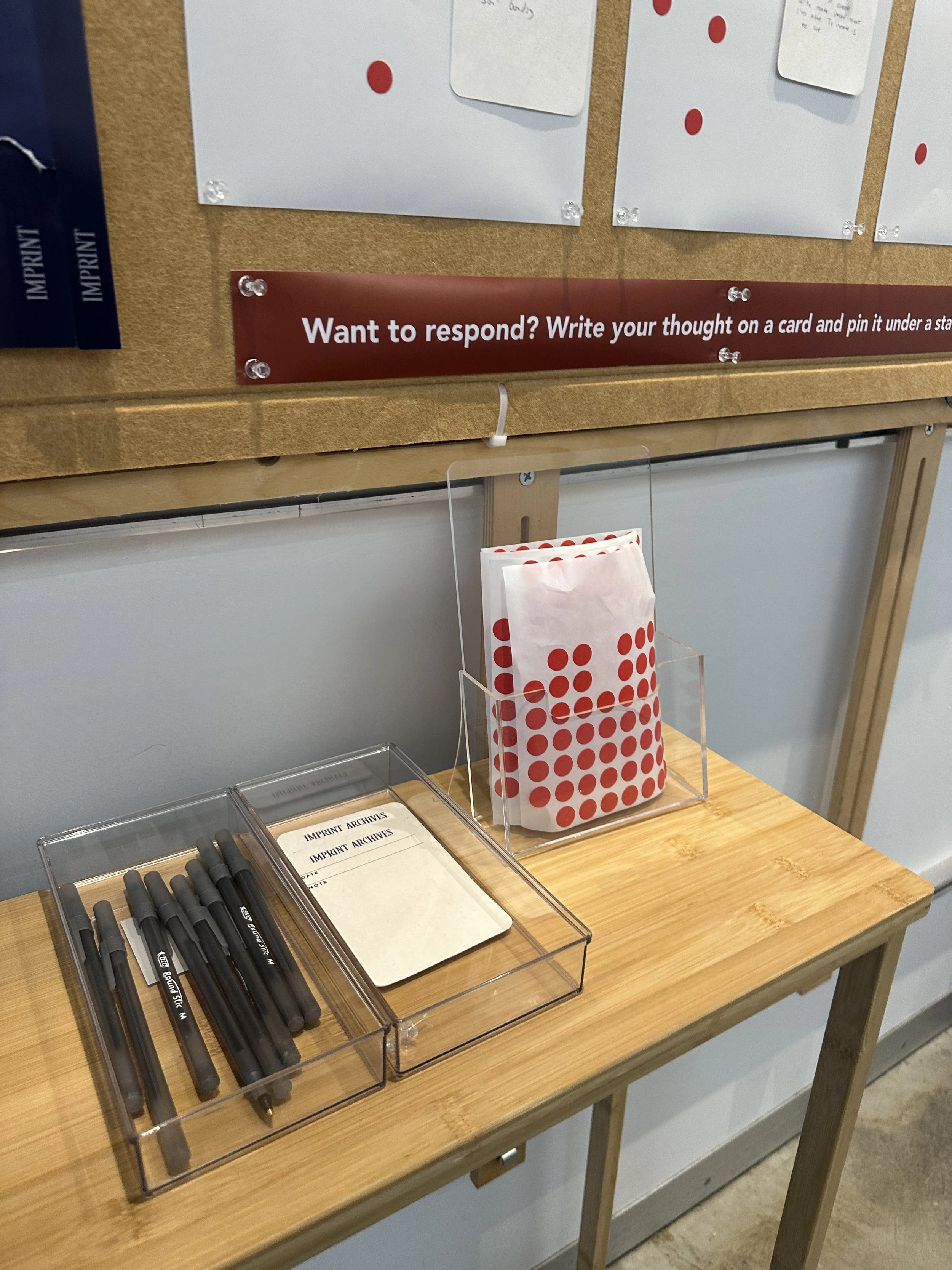 Establishing the hierarchy of these design elements was equally important. What should command the most attention? How significant is the interactive component—should it feel more like a gallery or a bulletin board? How much space should the quote occupy? And how can we ensure participants engage with every part of the project? These were the questions that guided the design process, shaping how IMPRINT would come to life.