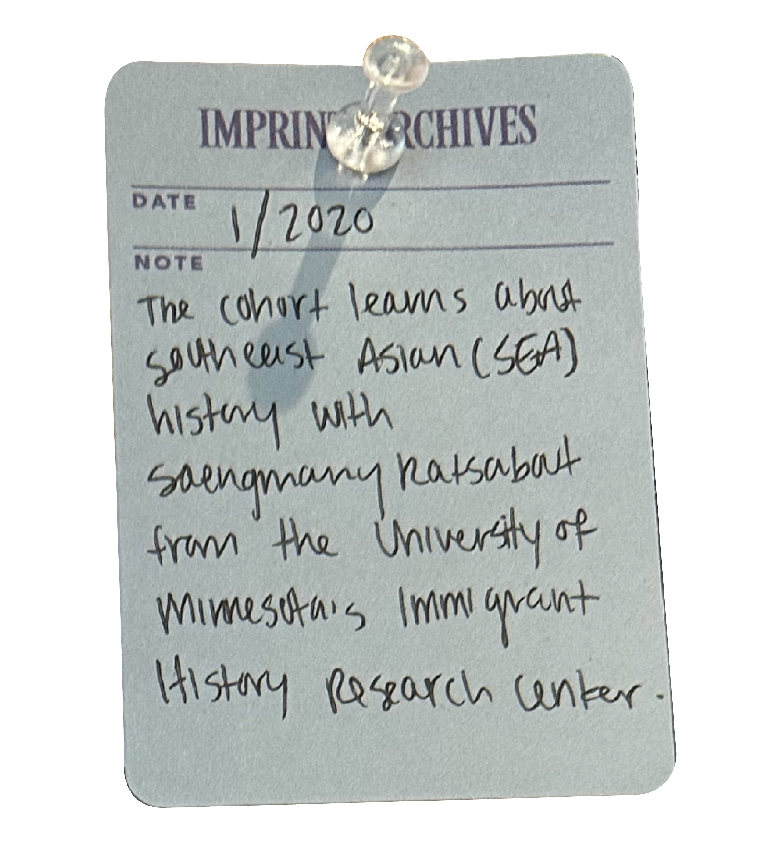 I designed five unique postcards, each featuring visuals from the board or inspired by its themes. The prompt on each card invites participants to write to a friend—sharing their experience with IMPRINT or reflecting on their own creative journey—or simply keep it as a personal reminder in their journal.