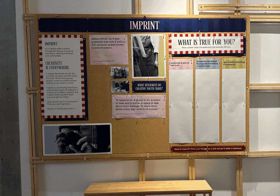 Imprint is a community board that explores the impact of creativity. It invites you to reflect, respond, and imagine what’s possible when everyone gets to create.