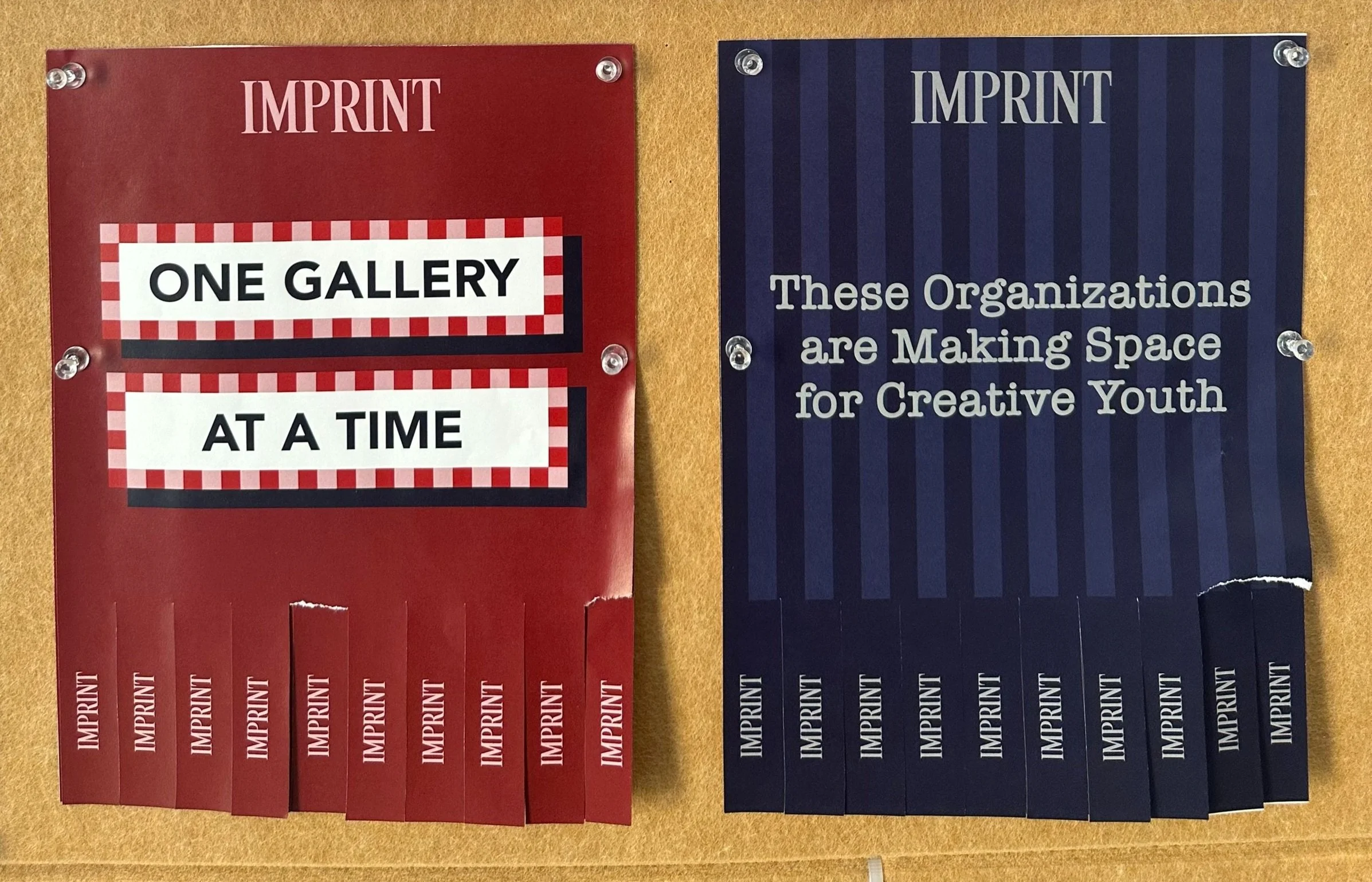 Another interactive feature of the IMPRINT Board is the pull-tab flyers. These flyers are designed to highlight galleries and organizations across the Twin Cities, showcasing the abundance of creative spaces available. Participants are encouraged to take a tab and discover a gallery to visit or an organization to learn more about.