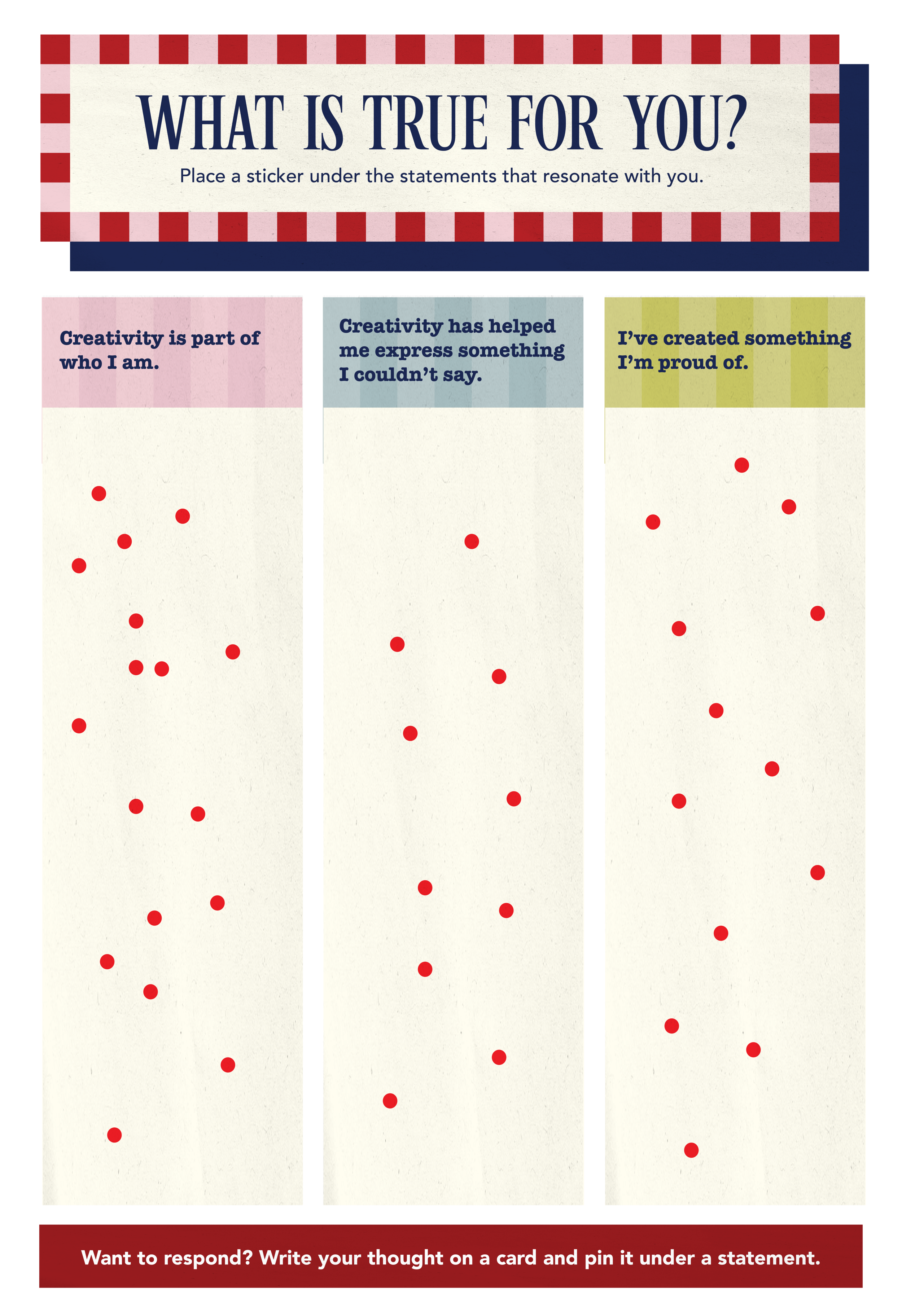 The Idea: A community board with a focus on storytelling and engaging prompts that invites participants to think about the role of creativity.