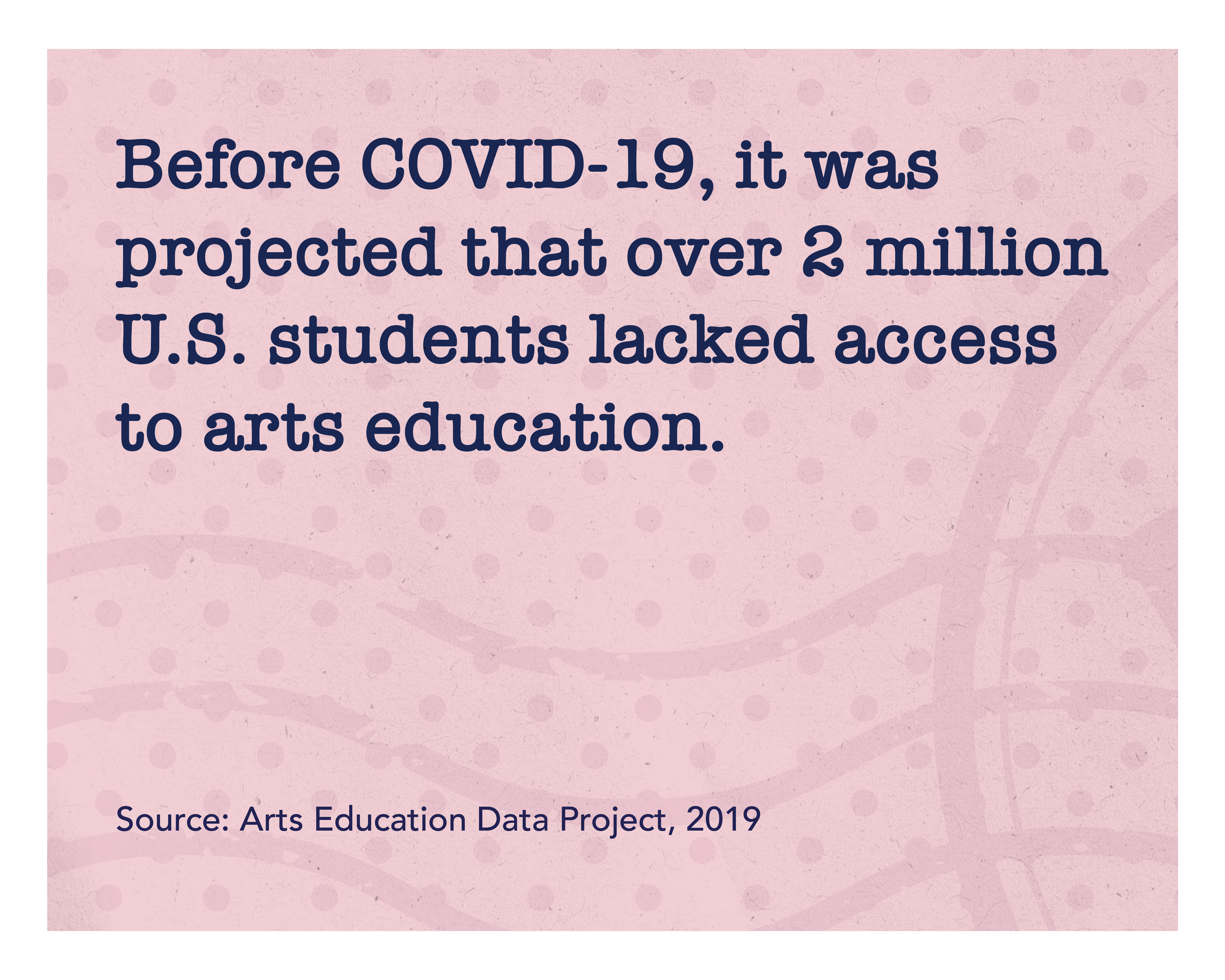 The one that stood out: Before COVID-19, an estimated 2 million U.S. students lacked access to arts education (Arts Education Data Project, 2019).